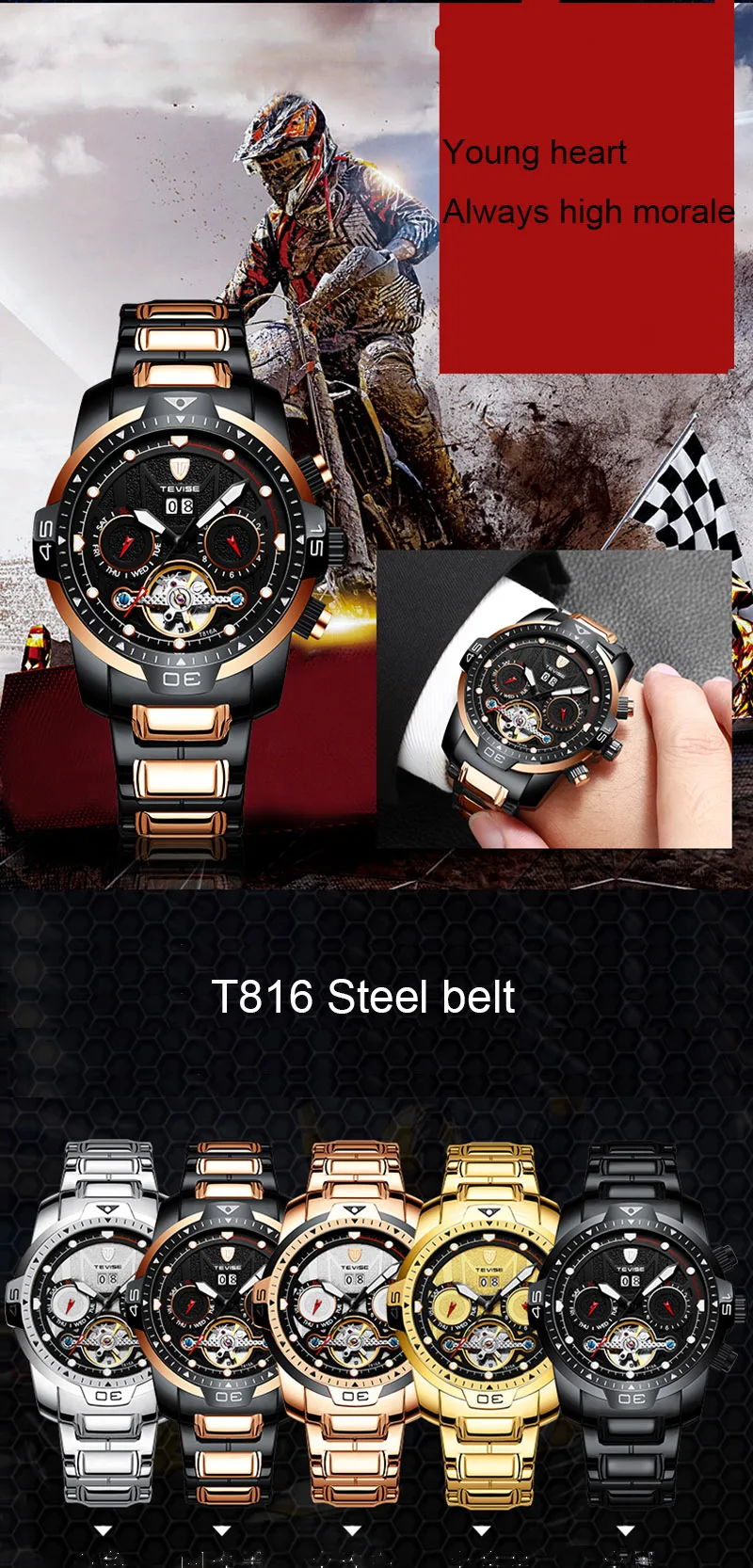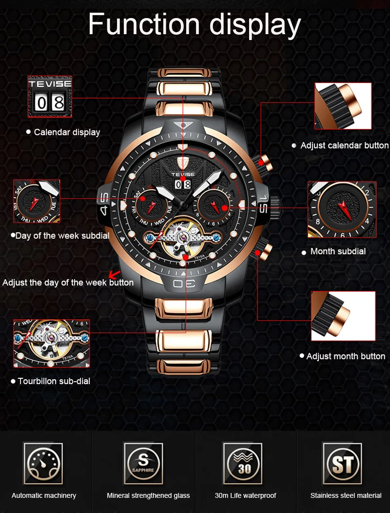 Часы наручные TEVISE T816A мужские с турбийоном, автоматические мех...