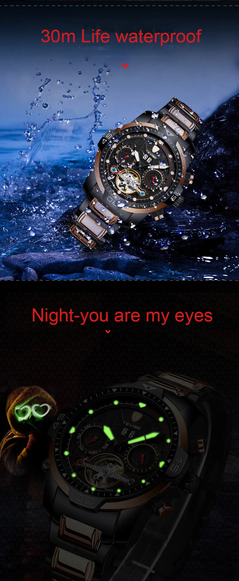 Новинка 2021, популярные модные механические водонепроницаемые мужс...
