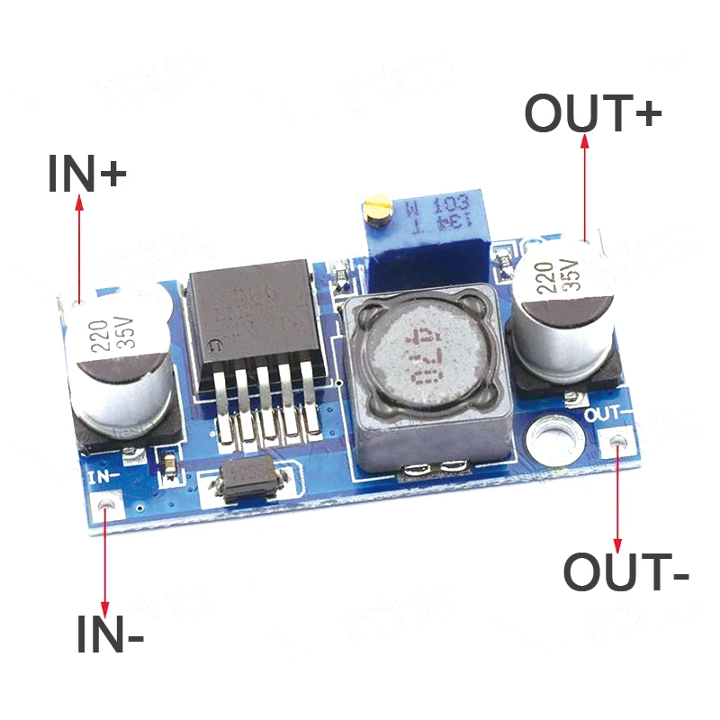 Инструкции:Доступ к мощности (3-35 в), отрегулируйте синюю ручку потенциометра (вращение по часовой стрелке, как правило, повышается, понижается против часовой стрелки) и с мультиметром для контроля выходного напряжения достигает необходимого напряжения.