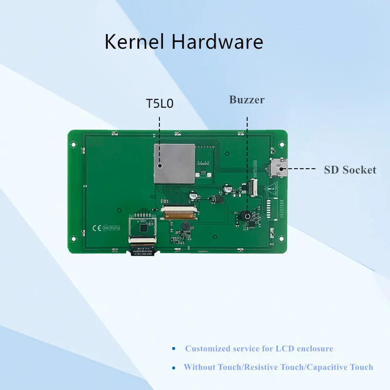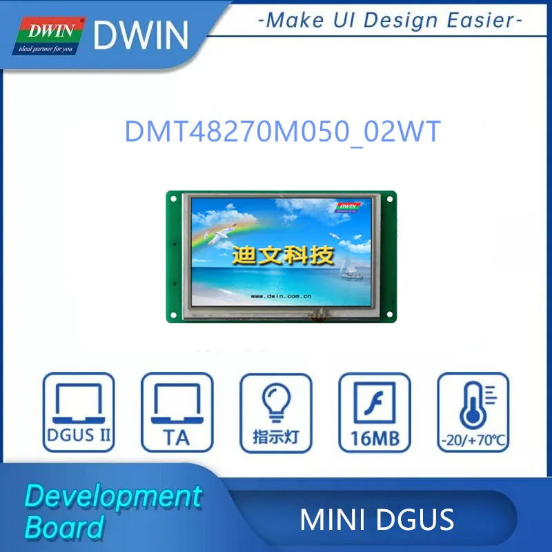 DWIN 7Inche 800x48 0 разрешение, 262k цвет, коммерческий высокий стандарт TFT LCD модуль Дисплей HMI резистивная сенсорная панель. DDMT48270M050_02WT-это интеллектуальный резистивный сенсорный экран с UART портом, который может управляться любым MCU с помощью команды, поэтому его можно использовать в качестве TFT дисплея и сенсорного контроллера в различных электронных устройствах. Панель ЖК-дисплея, Сенсорный ЖК-экран, дисплей DWIN-ваш лучший выбор для проекта HMI. DMG80480C070 _ 04WTC ЖК-дисплей на основе процессора DWIN T5L с двухъядерным графическим интерфейсом и ОС. Ядро GUI может поддерживать дизайн интерфейса на основе мощного программного обеспечения DWIN design, включая данные, текст, кривые, базовую графику, загрузку ключа, И т. Д. Ядро ОС можно открыть клиенту для второй разработки в сборке ОС, и это улучшает функциональность графического интерфейса. Все MCUs могут подключаться к интеллектуальному дисплею DWIN.
