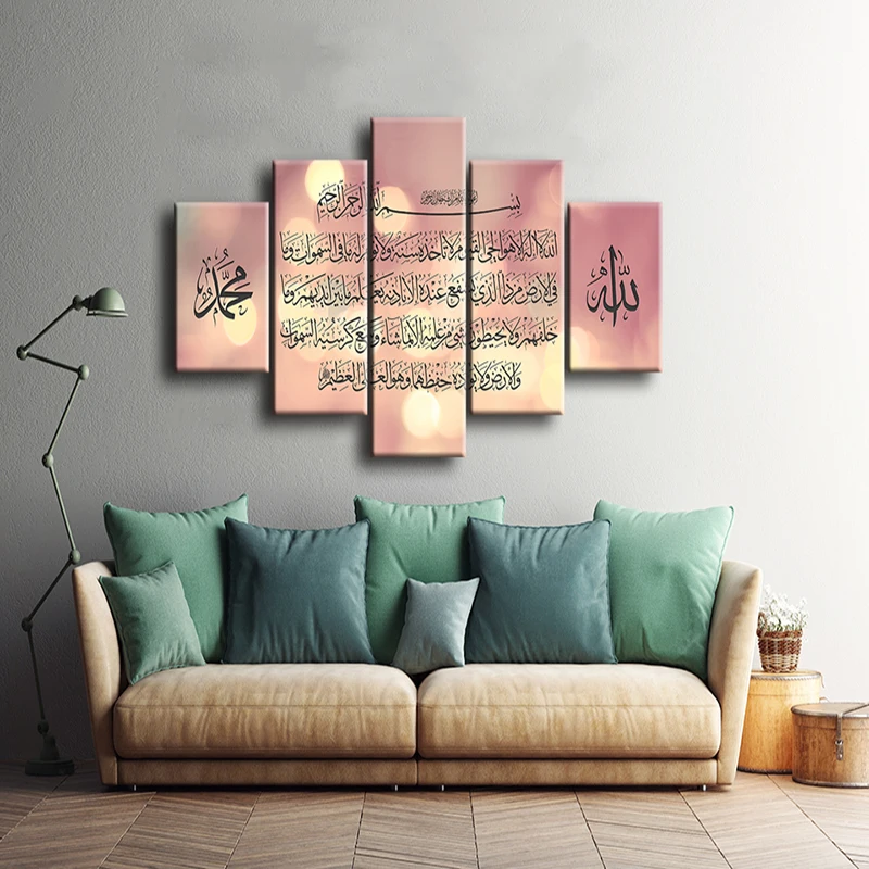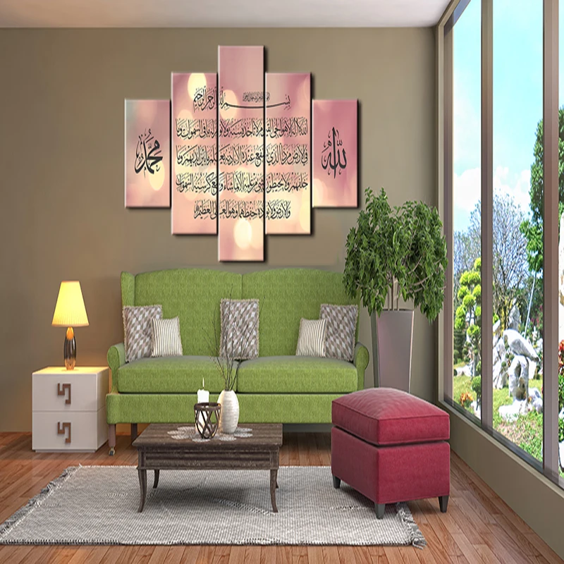 Мусульманская Библия, холст, живопись, настенное искусство, исламский Аллах The QurAn, постеры, 5 панелей, HD печать, гостиная, украшение для дома, картина