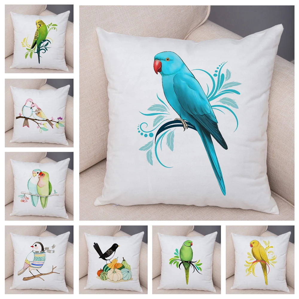 Чехол для диванной подушки, 45x45 см, с изображением животных, попугаев, птиц и цветов