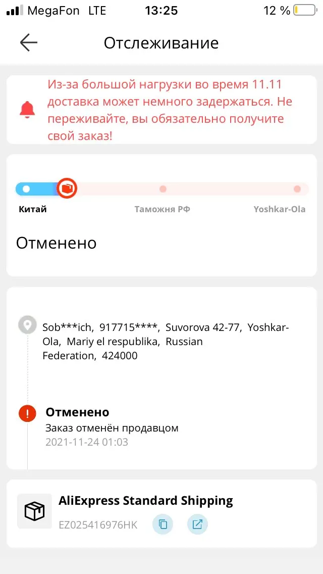 Страна: RU Доставка: Standard Shipping 26.11.2021
