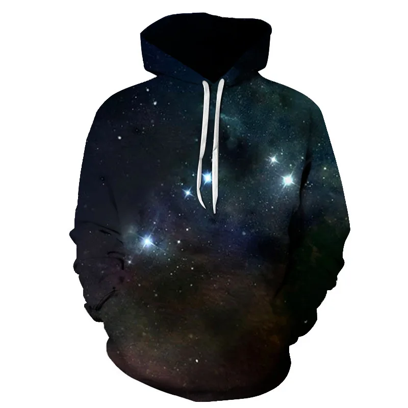 Новинка 2021, Свободный пуловер, свитер с 3D принтом звездного неба, модный свитер с капюшоном, осенне-зимняя толстовка, тонкая флисовая куртка