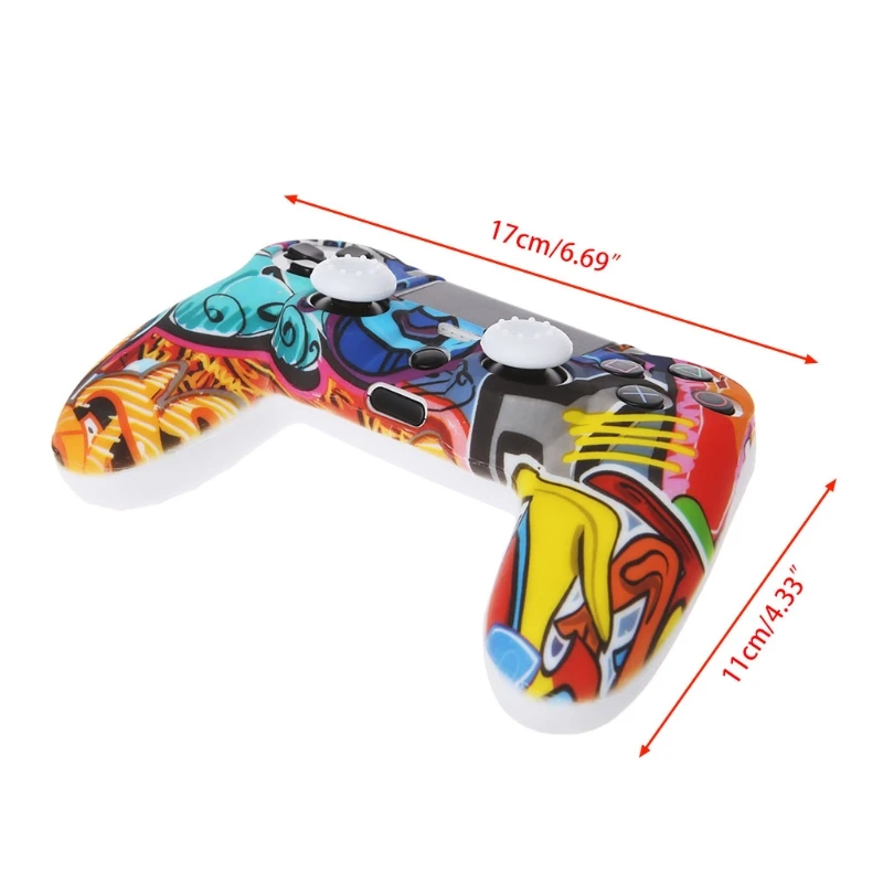 Особенности:100% новый товар высокого качества.Мягкий силиконовый чехол для контроллера PS4.Нажатие кнопок с подходящей резкой обеспечивает удобную работу.Защищает ваш контроллер от пыли, царапин, повреждений и повседневного использования.Уникальный дизайн обеспечивает легкий доступ ко всем кнопкам, элементам управления и портам без необходимости снимать кожу.Джойстик защищает джойстик от пыли и царапин.Улучшите свой игровой опыт с этими шапками.Геймпад на картинке не входит в комплект.Характеристики:Материал: силиконЦвет и узоры: разноцветный чехол с мультяшными рисунками для геймпада, белый для джойстика (как на фотографии)Размер: идеально подходит для контроллера PS4Количество: 1 комплект (другие демонстрационные аксессуары на рисунке не включены)Примечание:1. Перевод ед. измерения: 1 см = 10 мм = 0,39 дюймов2. Допускается погрешность в 0-1 см из-за ручного измерения. Пожалуйста, убедитесь, что вы не возражаете, прежде чем сделать ставку.3. Из-за разницы между различными мониторами изображение может не отражать фактический цвет изделия. Спасибо!Посылка включает в себя: (без розничной упаковки посылка)1 X силиконовый чехол2 X Силиконовый джойстик