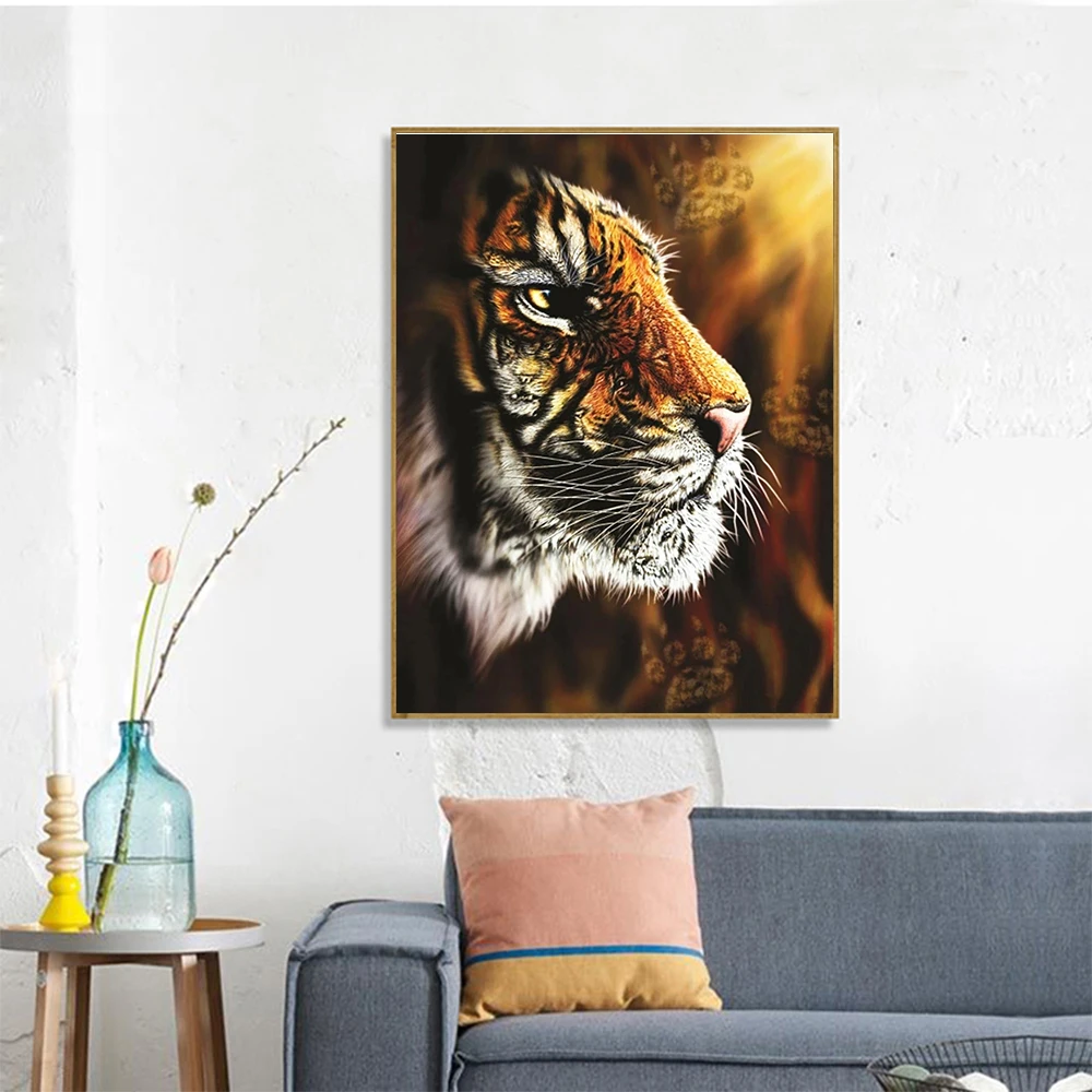 Алмазная вышивка Тигр Ручная работа Стразы Искусство Полностью круг...