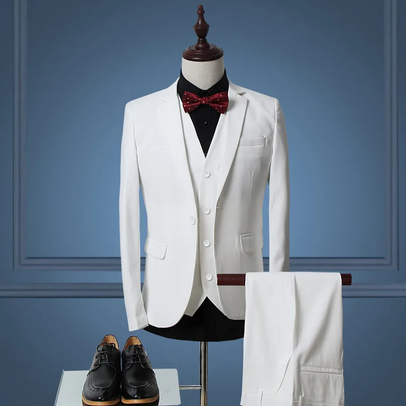 Свадебный приталенный пиджак, жилет, штаны, мужской костюм из 3 предметов