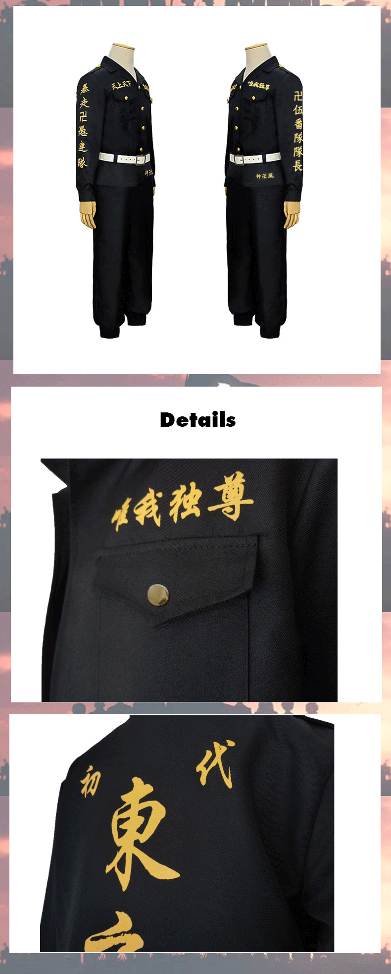 Костюм для косплея экипировки мангиро Сано, костюм команды спецназа, капитана черного цвета, комплект униформы на Хэллоуин