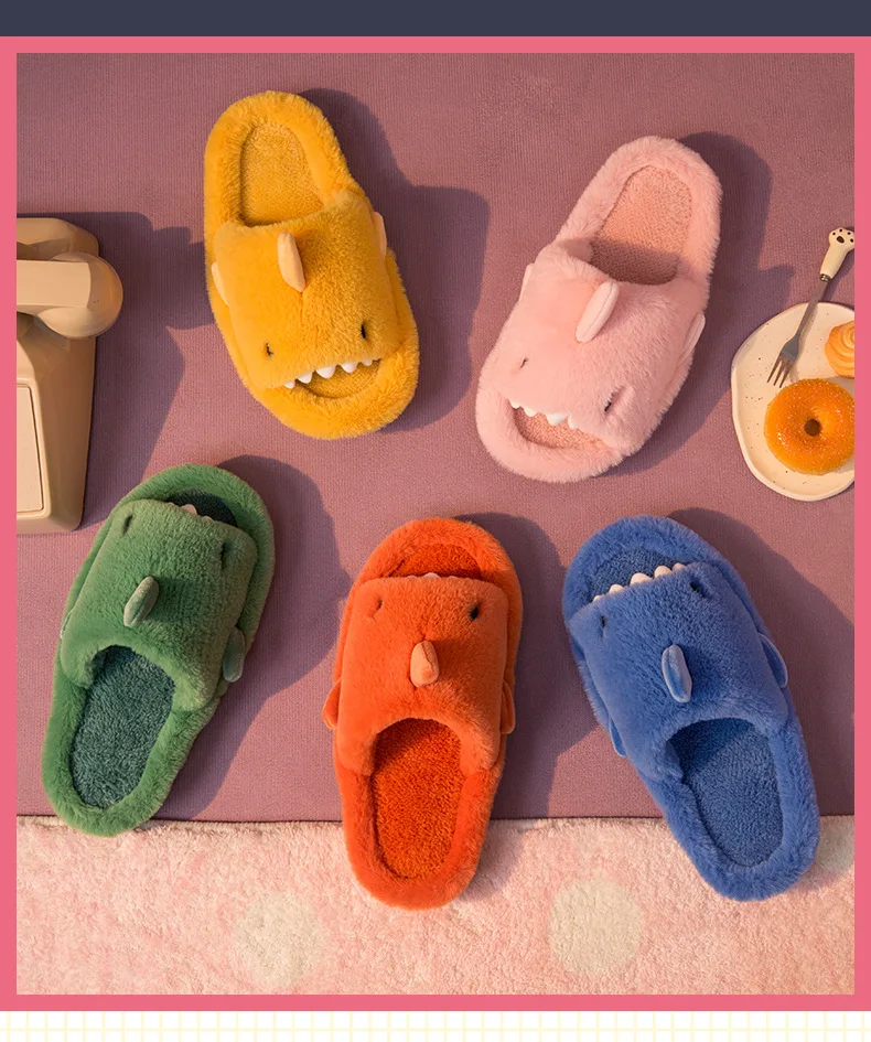Зимние домашние Симпатичные парные хлопковые тапки с акулой, женска...