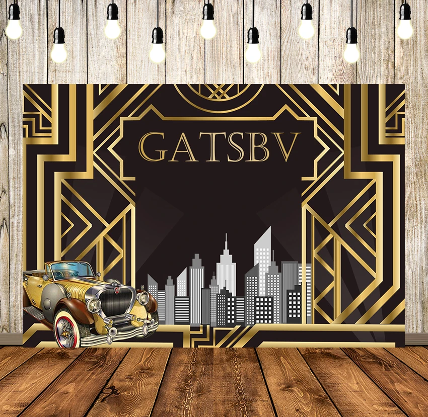 Фотофоны Гэтсби день рождения взрослых детей вечеринка черный и Золотой баннер фон для фотостудии