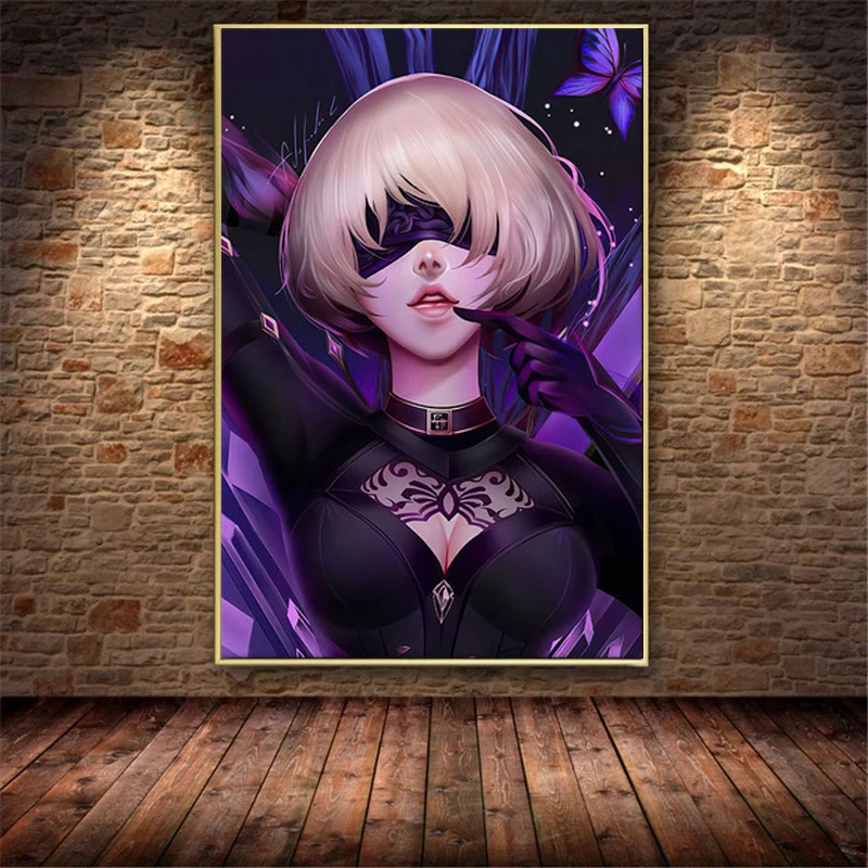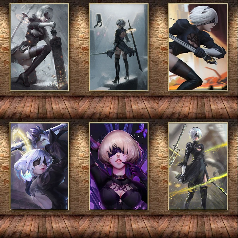 Японская Картина на холсте с аниме Nier Automata Fight Game Girl, плакаты и принты, картина на стену для гостиной, домашний декор icon star icon star icon star icon star icon star