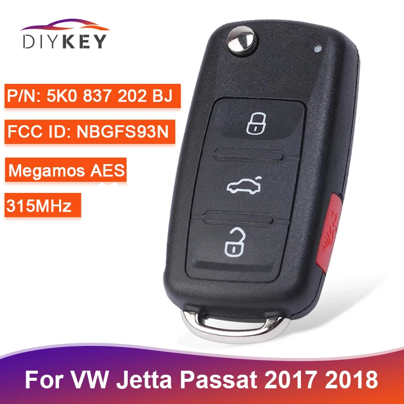 5K0837202BJ для VolksWagen Jetta Passat 2017 2018 MQB NBGFS93N Megamos AES чип 315 МГц дистанционный ключ-брелок от машины 3 + 1 кнопка