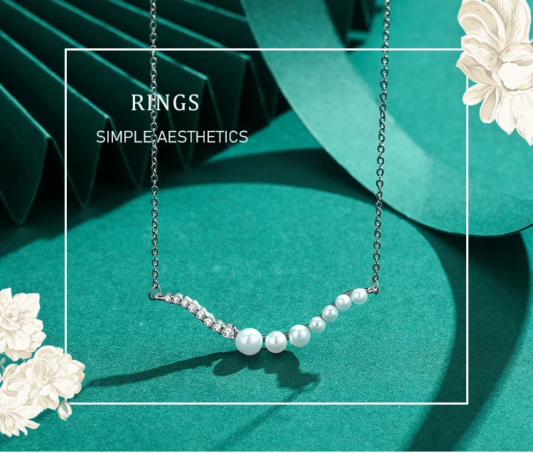 Ожерелье женское из серебра 925 пробы с жемчугом в форме волны
