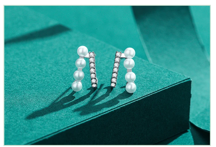 Серьги-гвоздики женские из серебра сверкающий Циркон пробы с жемчугом