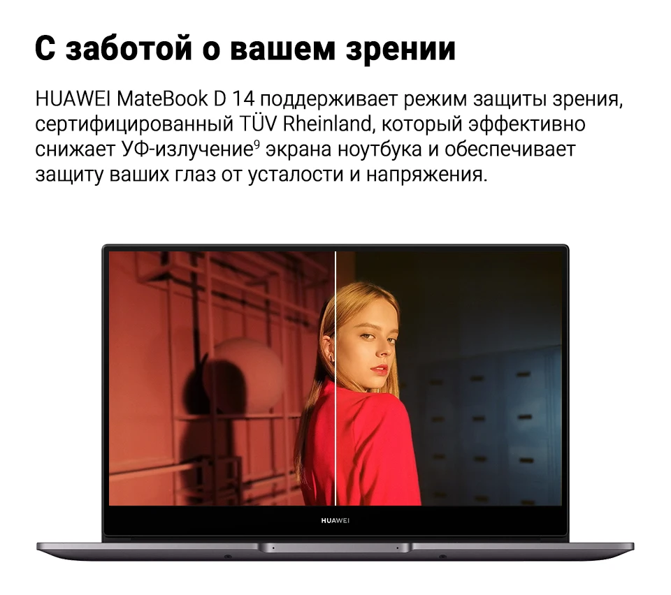 Ноутбук HUAWEI MateBook D 14 Intel i3-10110U 8GB + 256GB 14'' Безрамочный экранРостест, Доставка от 2 дней