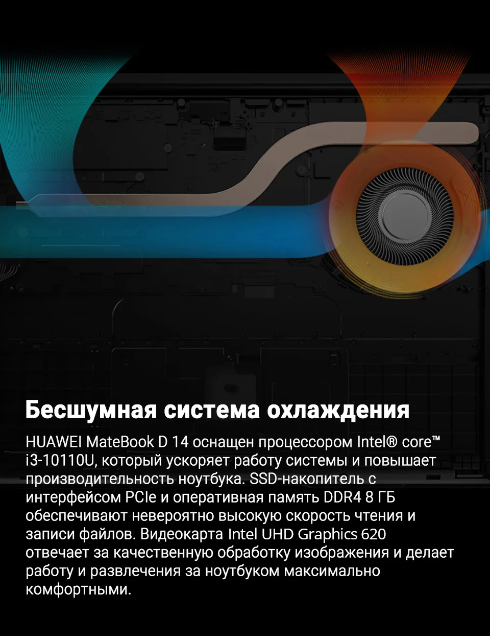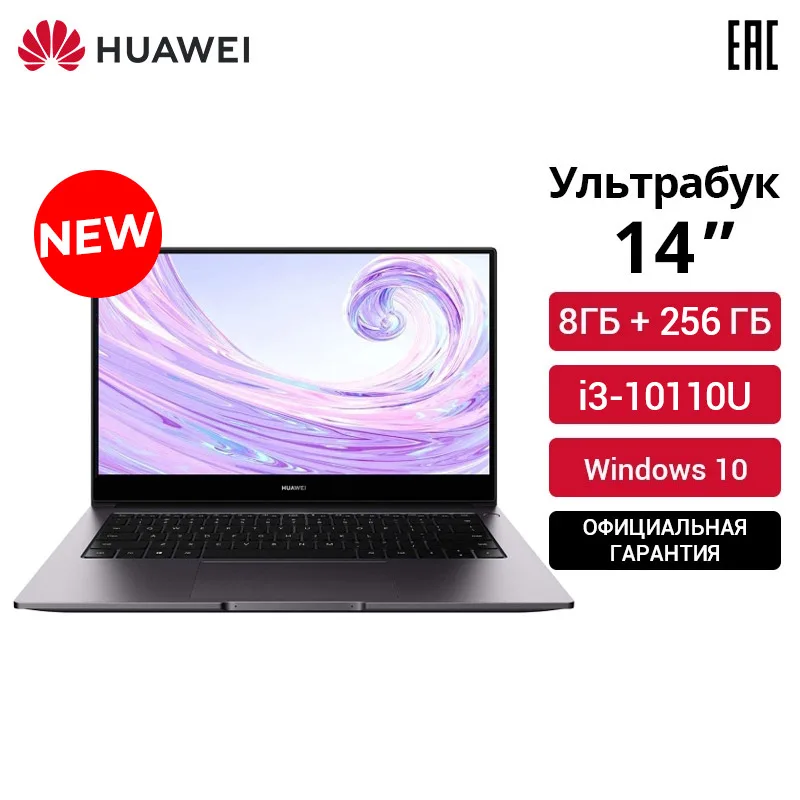 Ноутбук HUAWEI MateBook D1414,Intel Core i3-10110U,8Гб+256Гб SSD,wi...