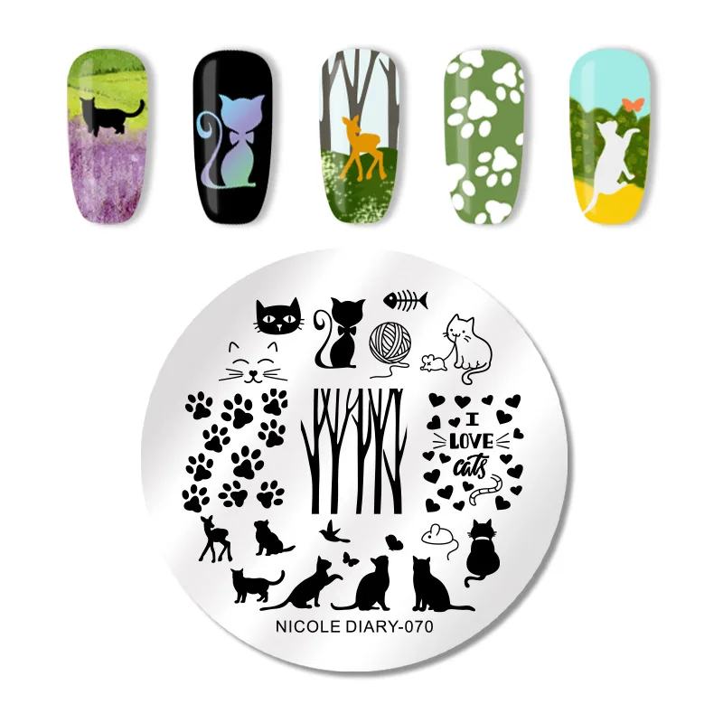 Пластины для штампов NICOLE DIARY с изображениями животных, сетка в...