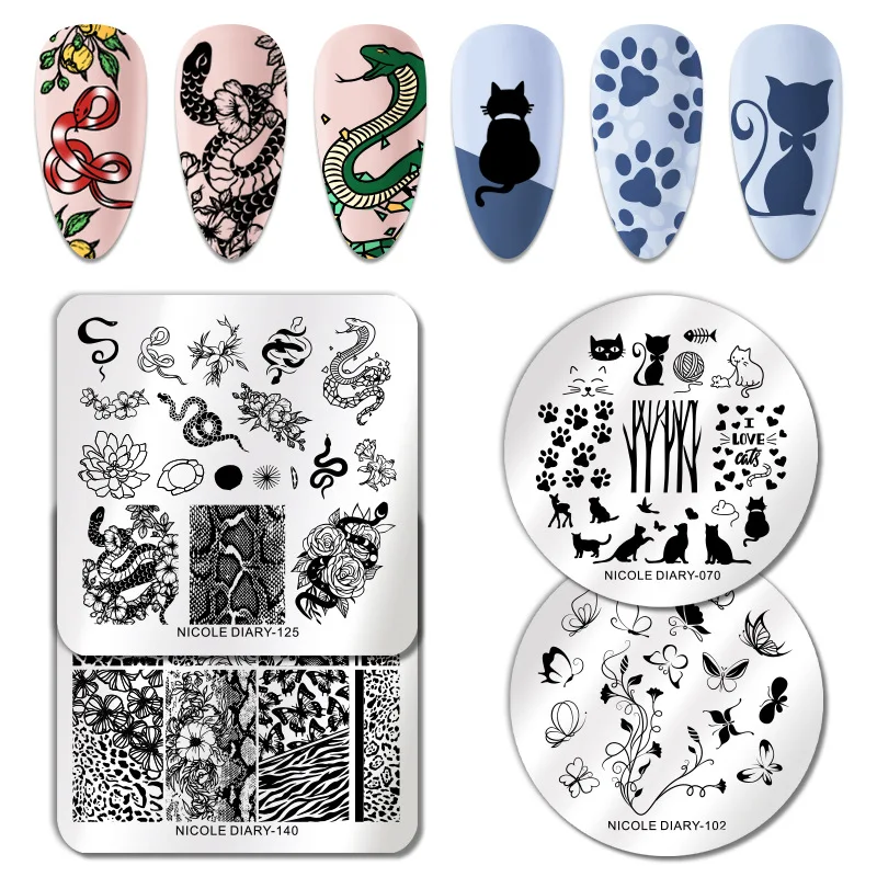 Шаблон с животными для женского дизайна ногтей прямоугольная пластина из нержавеющей стали штамповочные пластины для ногтей шаблон для дизайна ногтей