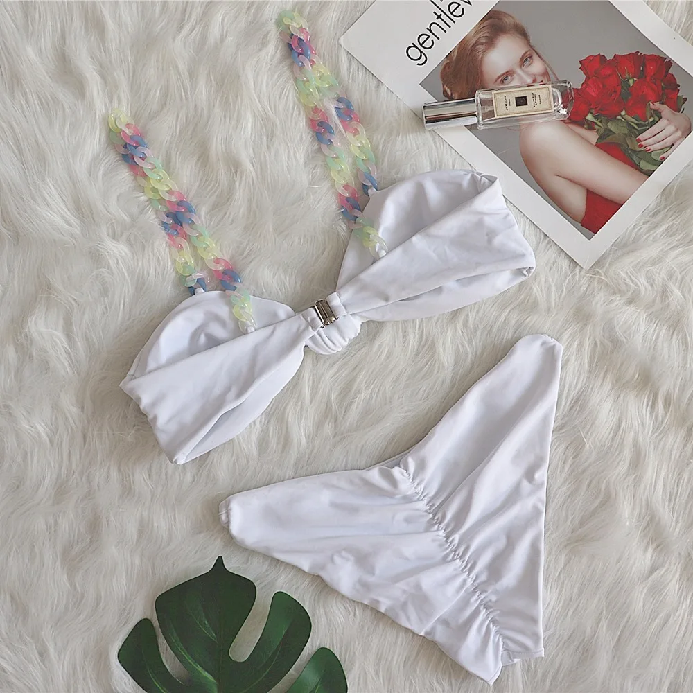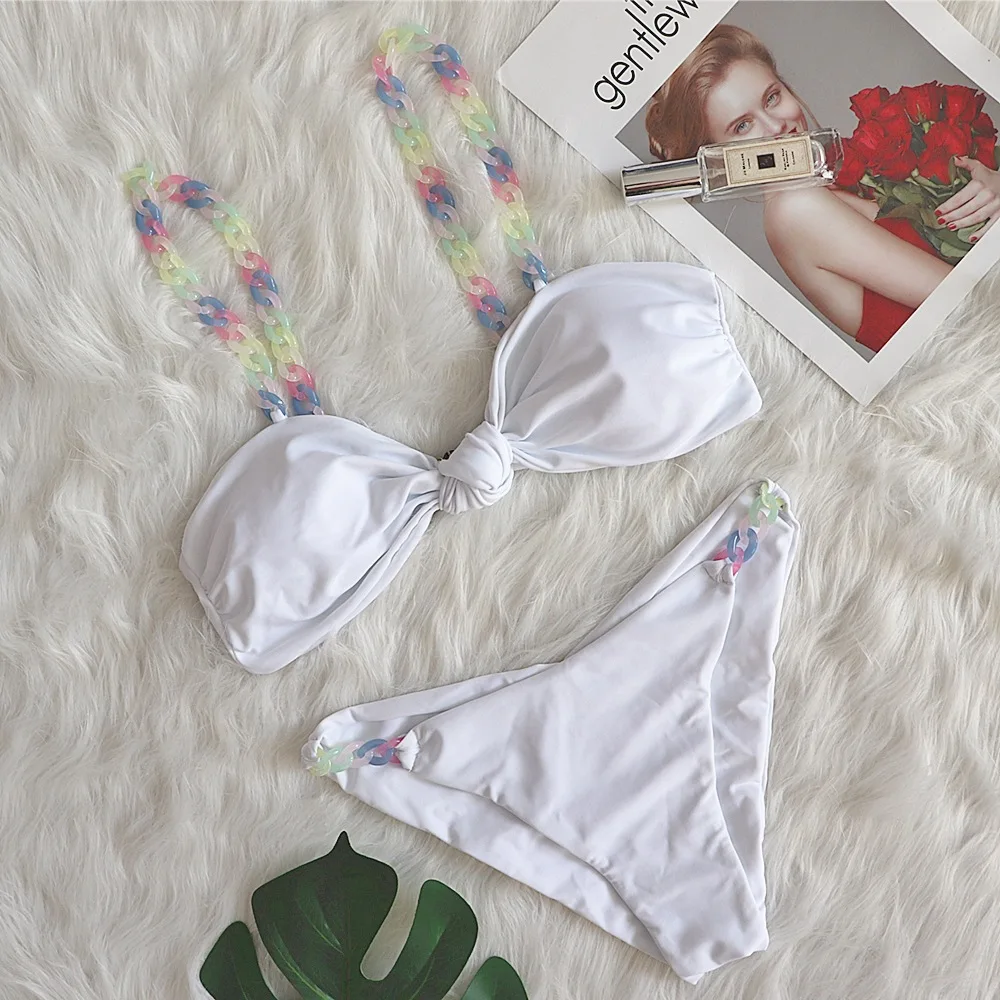 Бикини 2021 сексуальный бандо с узлом цветная цепочка однотонный ку...