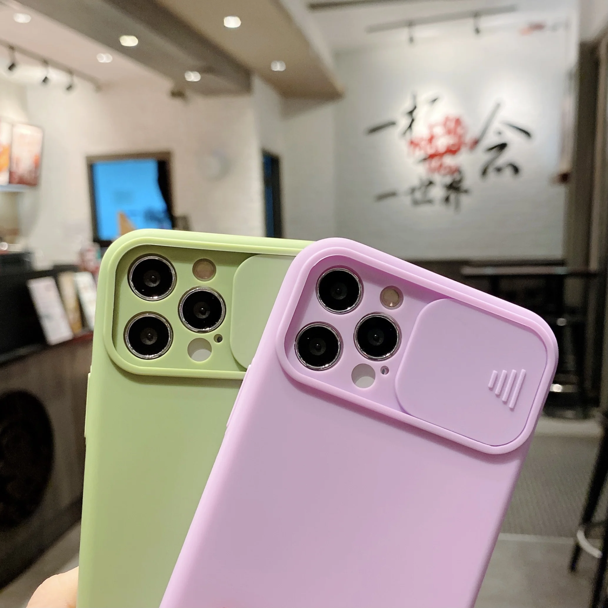 Чехол для защиты объектива скользящей камеры для iPhone 13 12 Mini 11 Pro XS Max XR X 7 8 Plus SE 2020, Мягкий Силиконовый противоударный чехол карамельных цветов