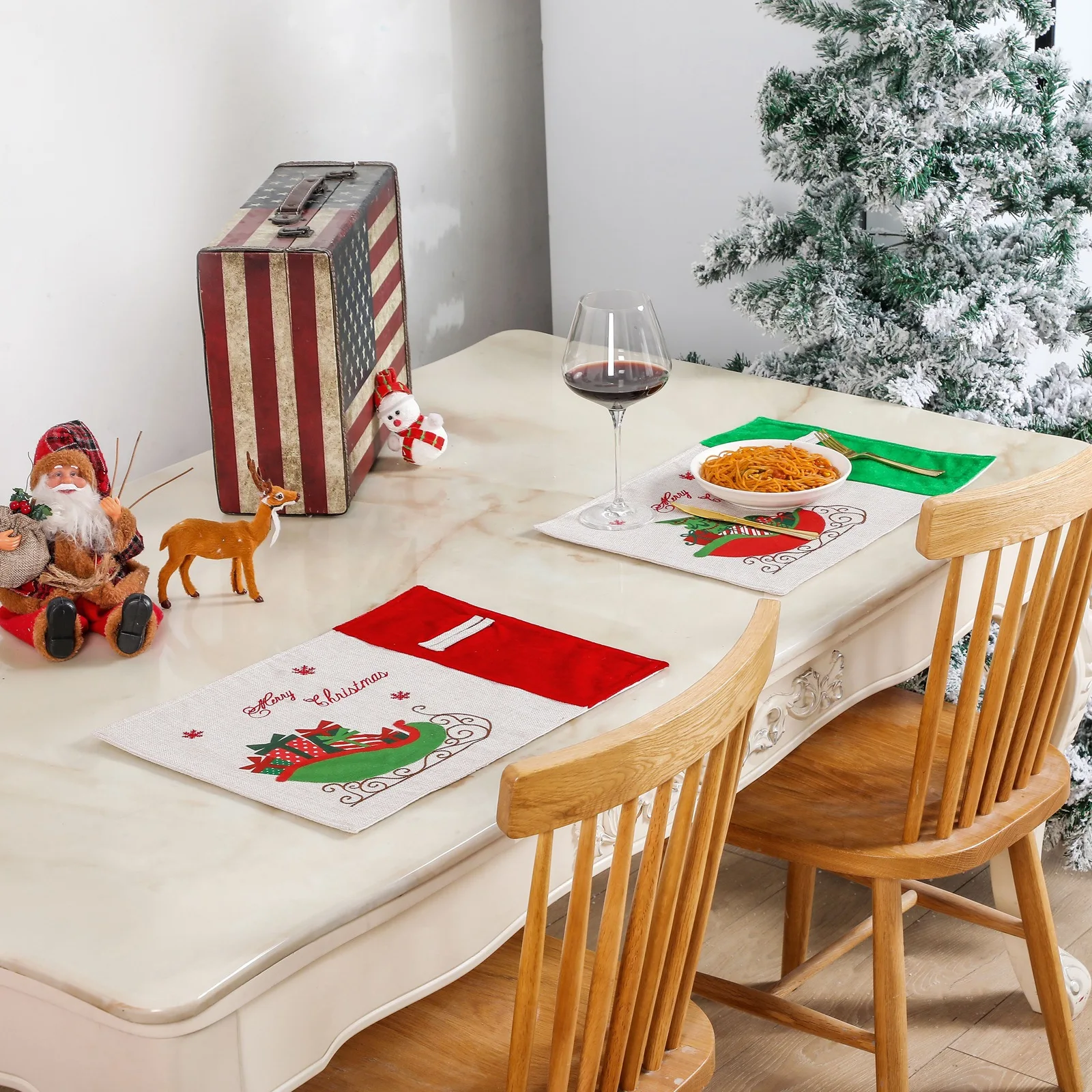 Рождественская кухонная подстилка, столовые коврики, льняной коврик...