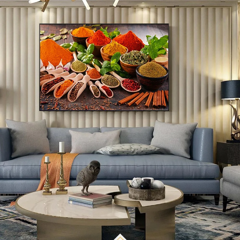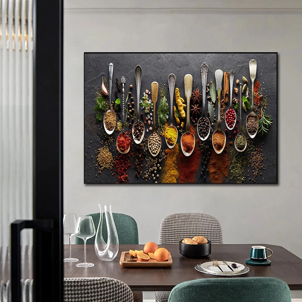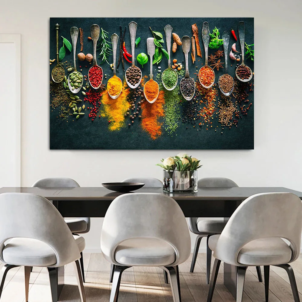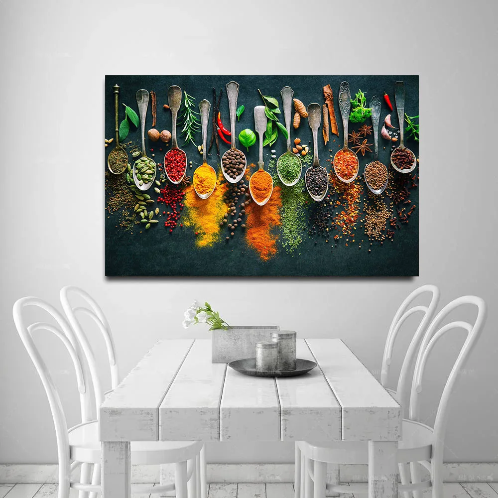 Картина на холсте, настенная живопись, ложка для специй, перцы, кухонные украшения, плакаты, принты для столовой, Настенная печать, декор для картин