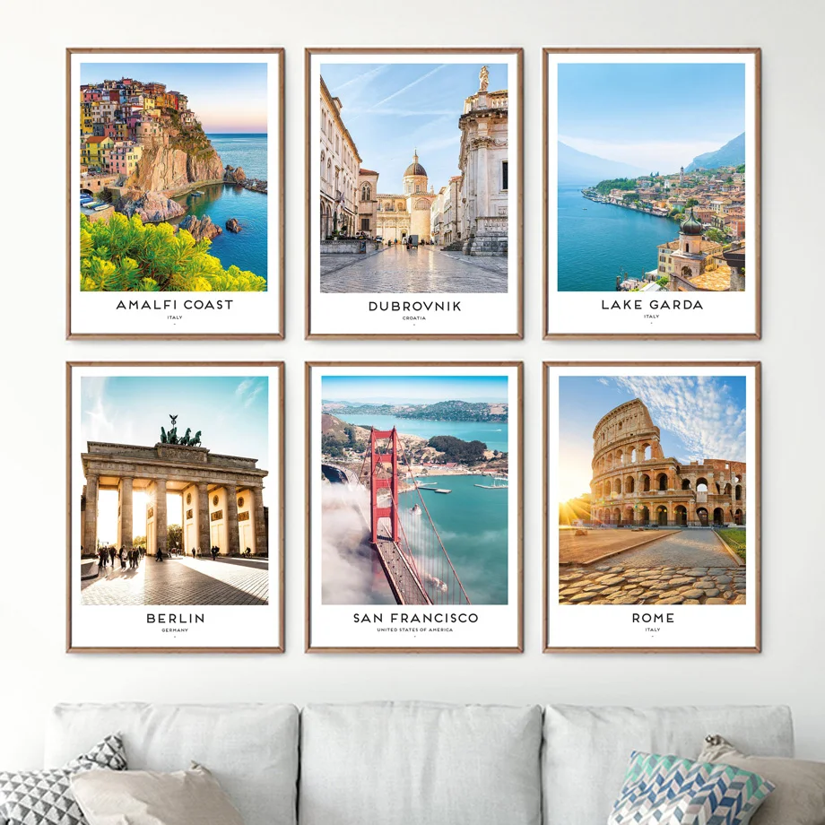 Настенная Картина на холсте с изображением берега Амальфи и Парижа