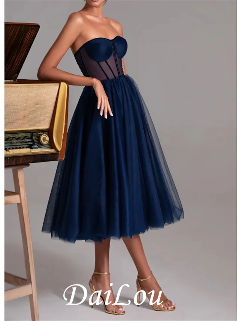 ТРАПЕЦИЕВИДНОЕ сексуальное коктейльное платье для выпускного вечера с вырезом сердечком без рукавов длиной ниже колена Тюль со складками 2022