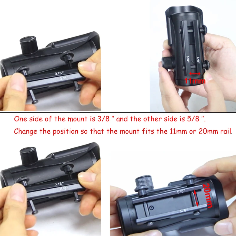 Одна сторона крепления составляет 3/8 '', а другая-5/8''. Измените положение так, чтобы крепление подходило рельсу 11 мм или 20 мм.