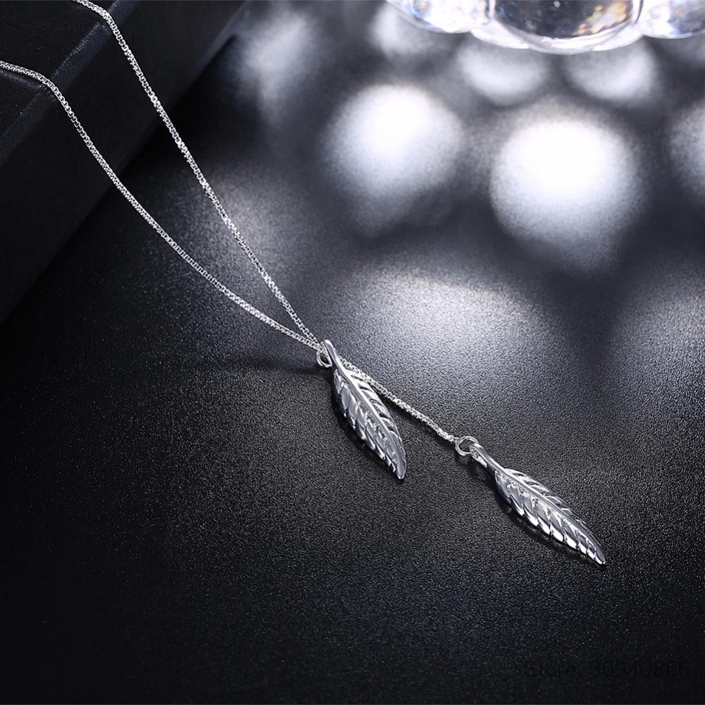 SMTCAT S925 печать серебряного цвета двойной лист коробка цепи перо ожерелье для женщин Свадебные помолвки вечерние ринки ювелирные изделия