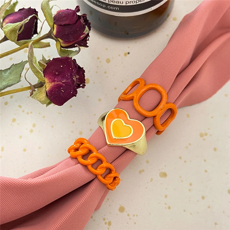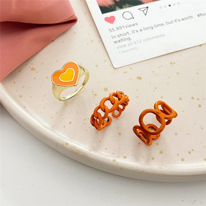 Набор Колец Y2K в Корейском стиле с цепочкой из смолы золотого цвет...