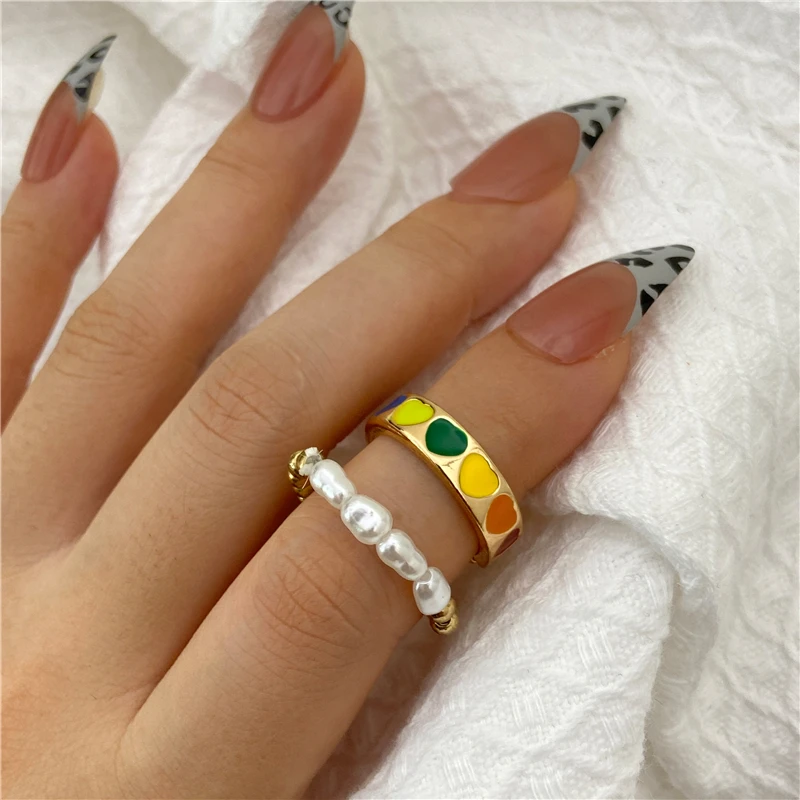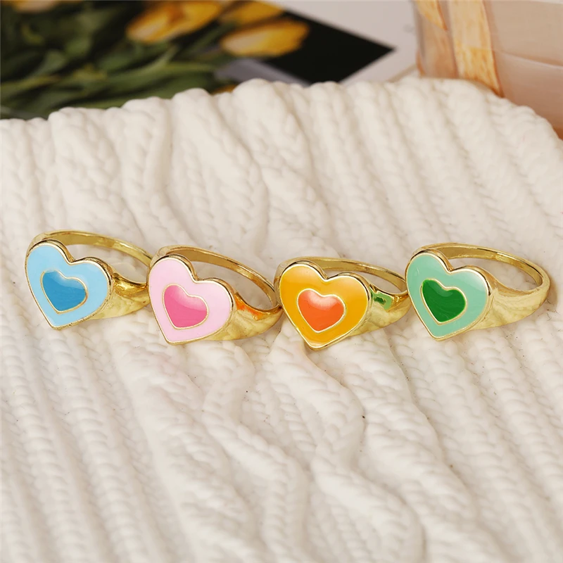 Набор женских колец Y2K, корейские разноцветные кольца в форме серд...