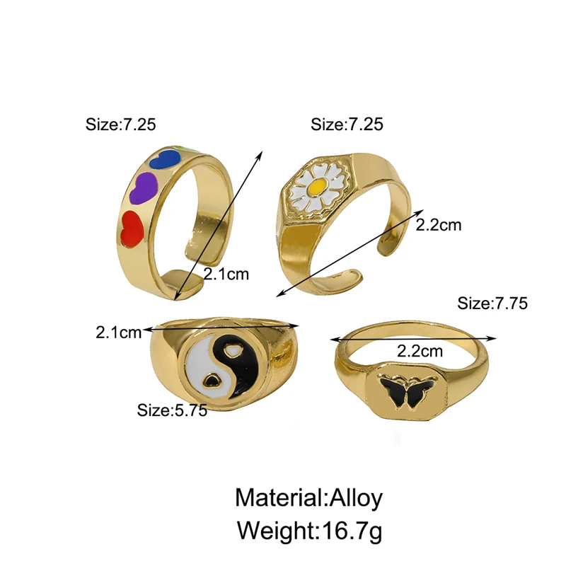 Комплект колец из 345 шт. в Корейском стиле INS Y2K из смолы для же...