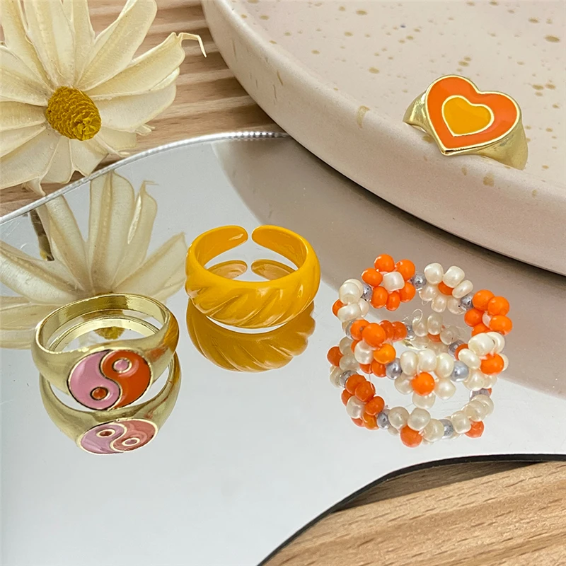 Набор разноцветных колец с бусинами Y2K, ювелирные изделия с тюльпа...