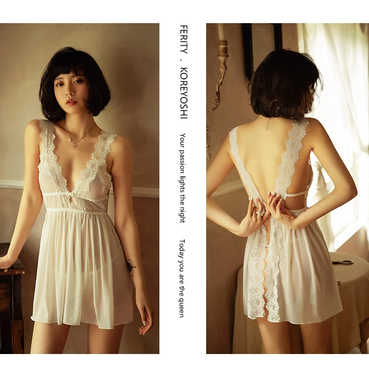 Женская пикантная ночная рубашка, комплект из 2 предметов, женская пижама с V-образным вырезом, стринги, кружевная Пижама, одежда для сна, домашняя одежда, пижама, ночная рубашка XXXL
