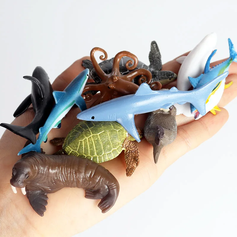 Characteristic 2Mini Sea Life Animal Rays Shark Turtle Model Figurines Kids Toy