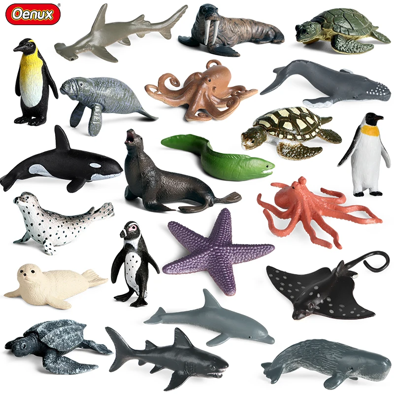 Характеристика:Oenux морские животные Дельфин лучи КИТ Акула Пингвин модель фигурки Морская жизнь аквариум игровой набор миниатюрные Развивающие детские игрушки
