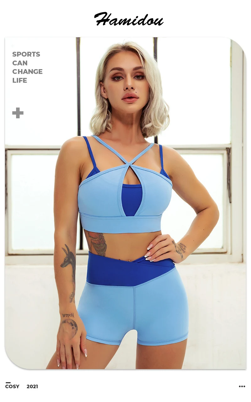 Комплект женский спортивный из 2 предметов, с шортами пуш-ап и бюстгальтером