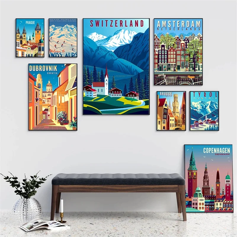 Hd Печать на холсте художественная живопись Европейский постер Амстердам Дания Стокгольм город винтажные путешествия города пейзаж настенная живопись