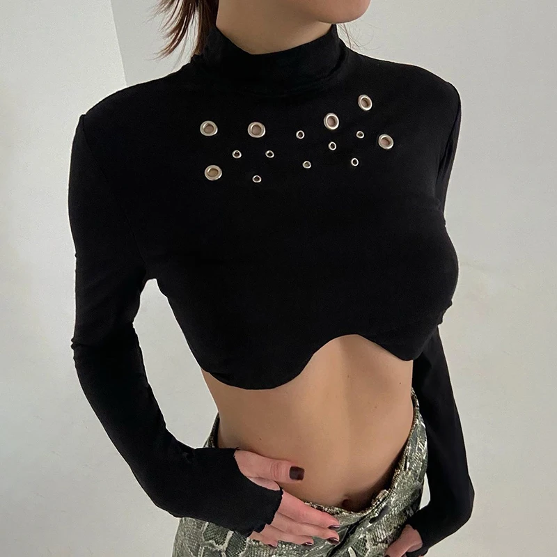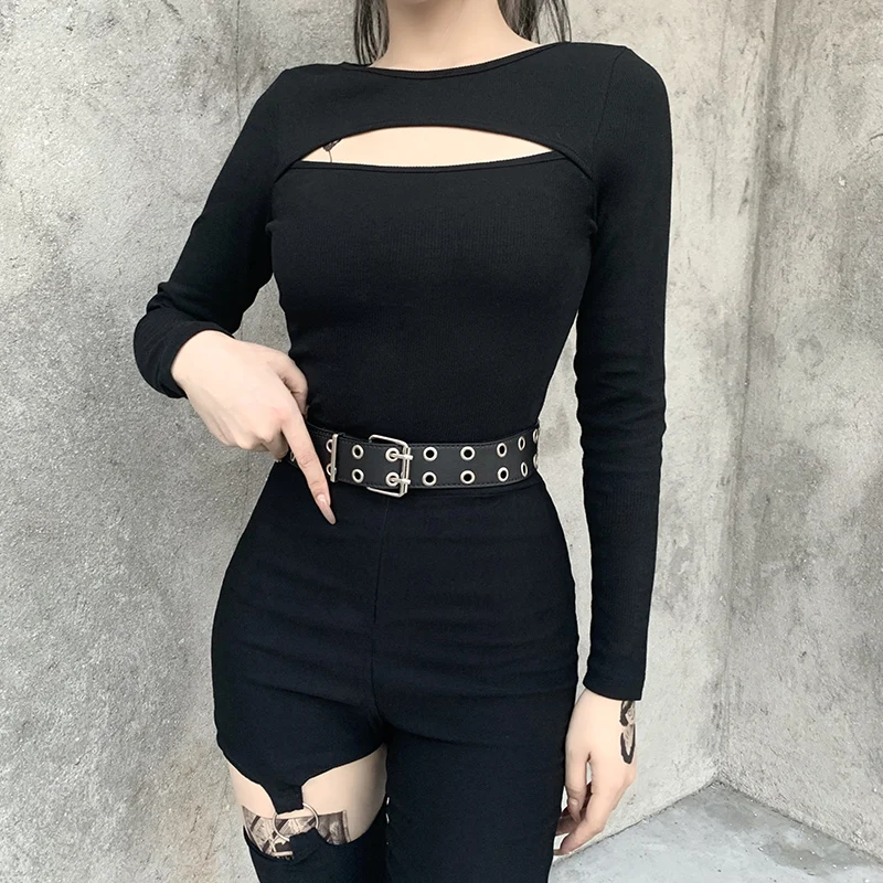 Женская Винтажная Футболка InsGoth, черная облегающая футболка с длинным рукавом, в стиле Харадзюку, осень 2021