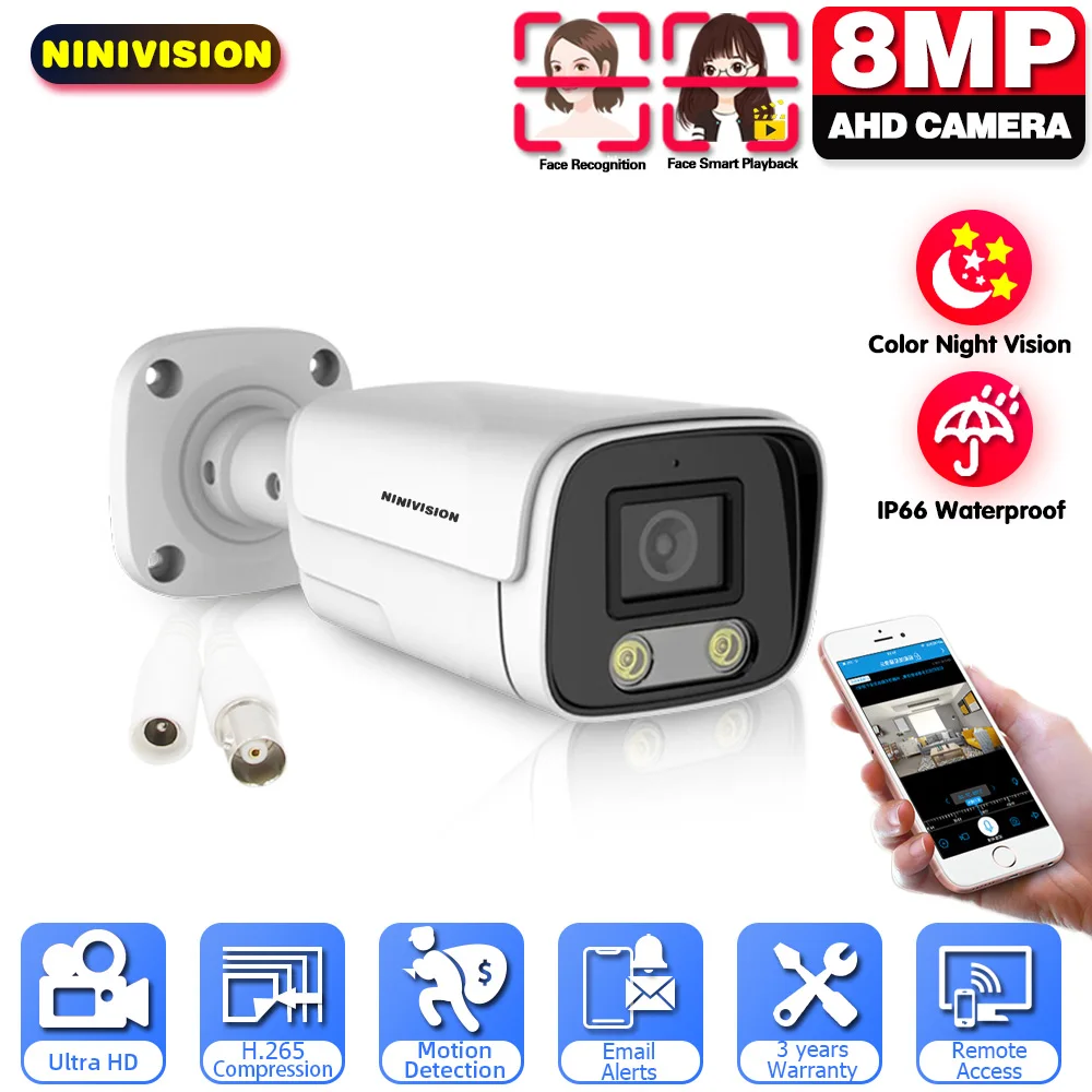 Аналоговая ИК-камера высокого разрешения, полноцветная уличная Водонепроницаемая камера видеонаблюдения с функцией ночного видения, 8 Мп, AHD, с функцией распознавания лица и движения