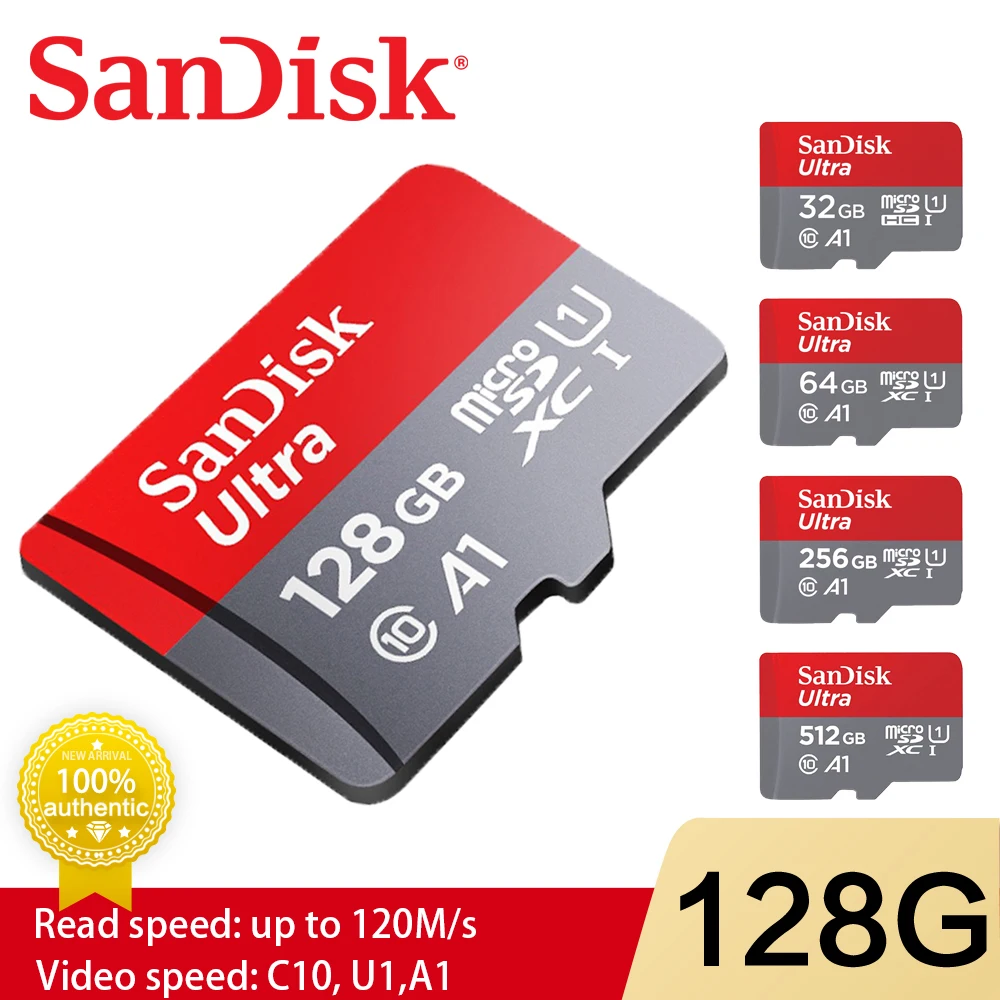 Карта памяти SanDisk Ultra microSDHC C10,U1,Full HD,A1,Micro SD карта 128 ГБ 200 ГБ 256 ГБ 64 ГБ 512 ТБ TF флеш-карты Trans