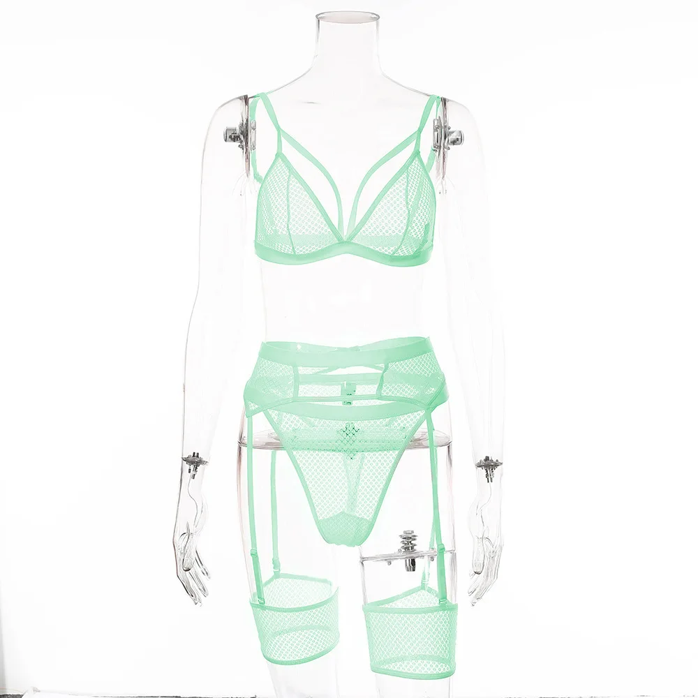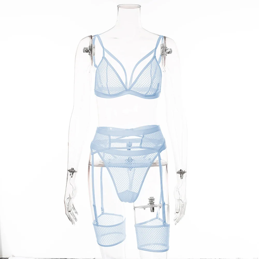 Комплект сексуального женского белья из 3 предметов, кружевной сетч...