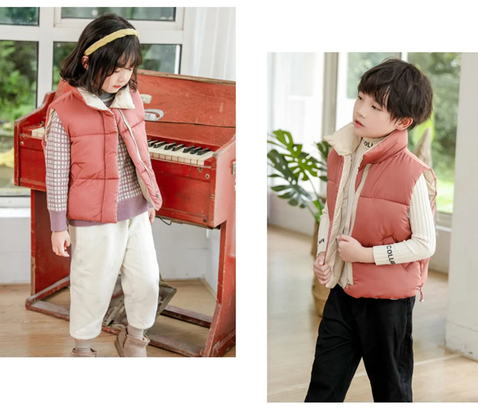 Осень-зима 2021, детские жилеты, пальто, теплые безрукавки для мальчиков и девочек, Цветные Красные, желтые жилеты для маленьких детей, унисекс