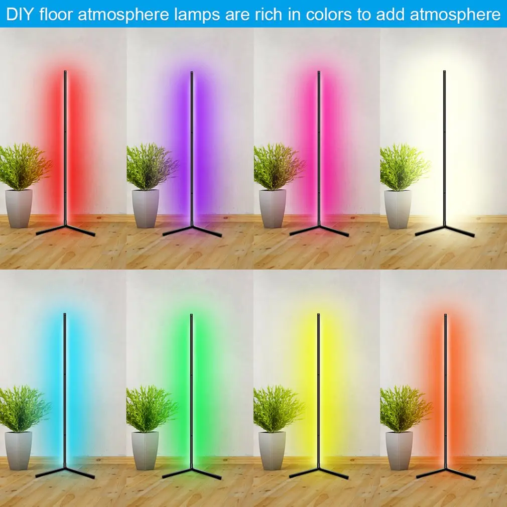 Угловая напольная лампа RGB с изменяемой яркостью, лампы с беспроводным управлением через приложение Romote для гостиной и спальни