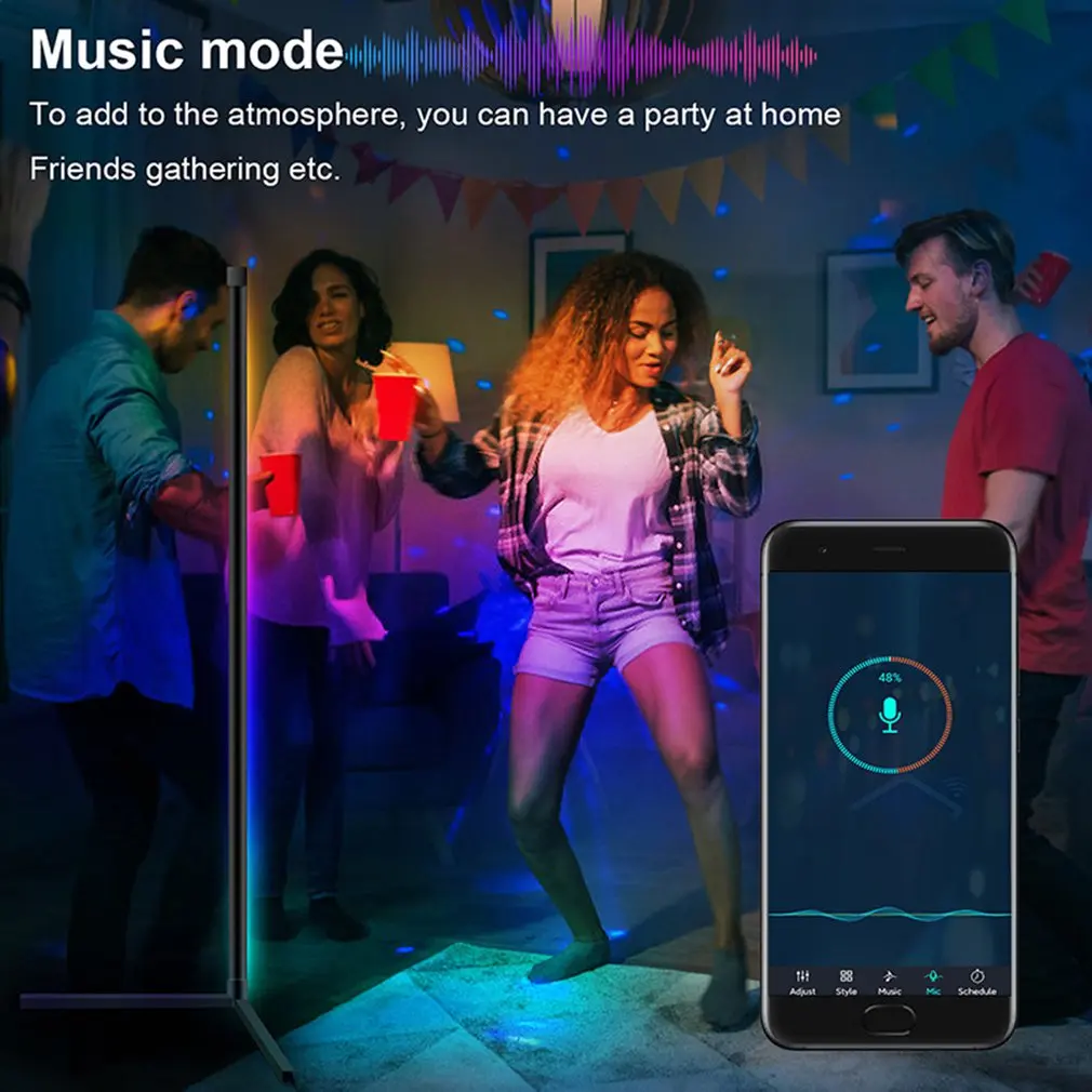 5. Широко используется: Высокопроизводительный вертикальный окружающий светильник, который может быть идеально установлен в углу. Освещение мягкое, равномерное и антибликовое, подходит для добавления атмосферы во время фестивалей, вечеринок и дней рождения, подходит для жилых комнат, спален, кабинетов и т. д.