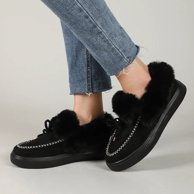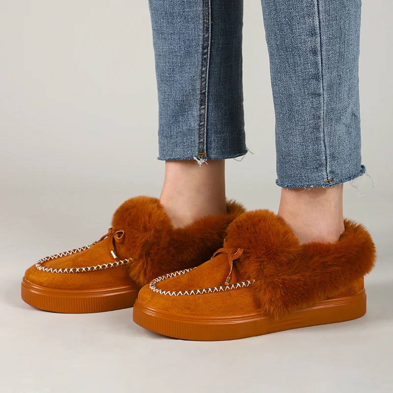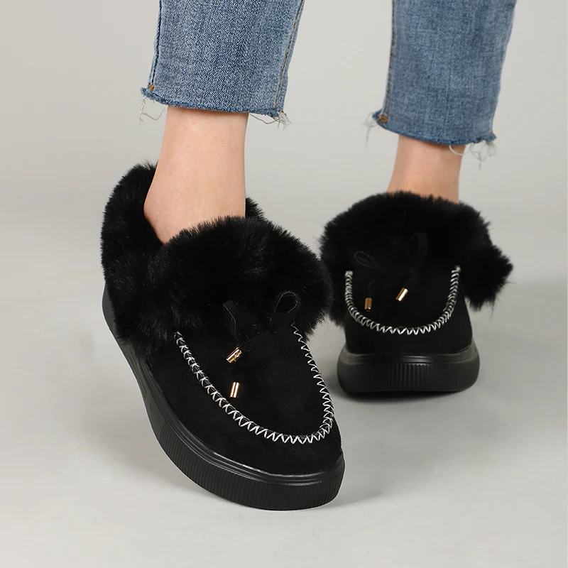 Женские ботинки на плоской подошве, с плюшевой подкладкой, теплые, хб