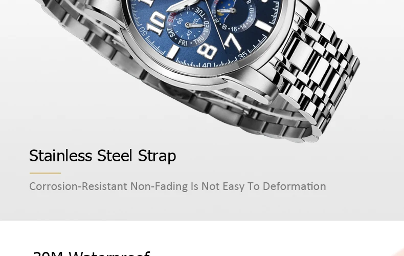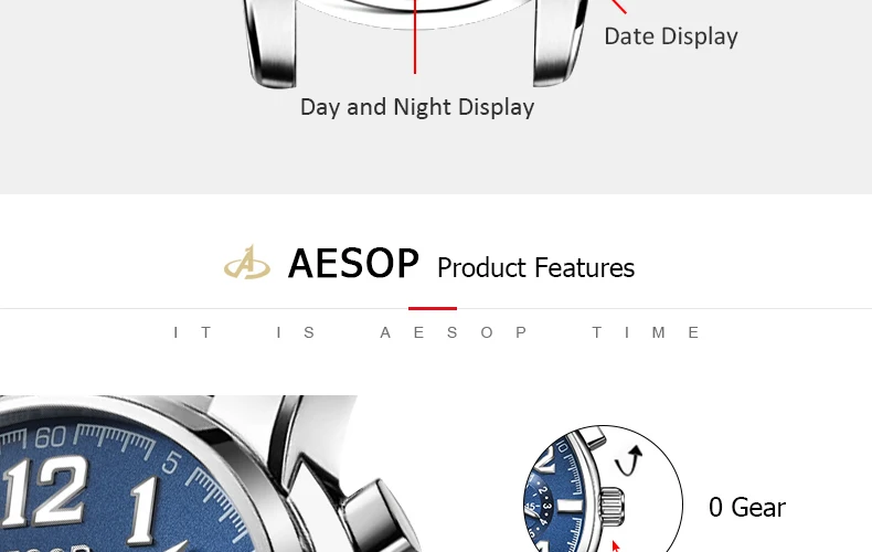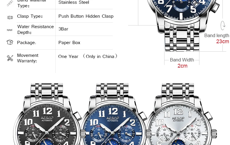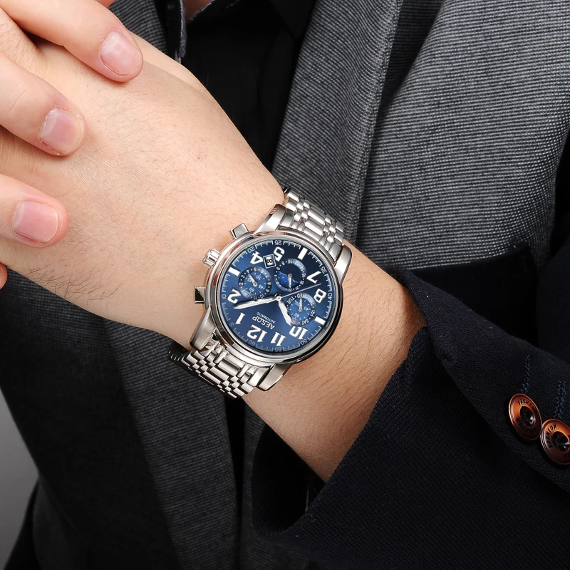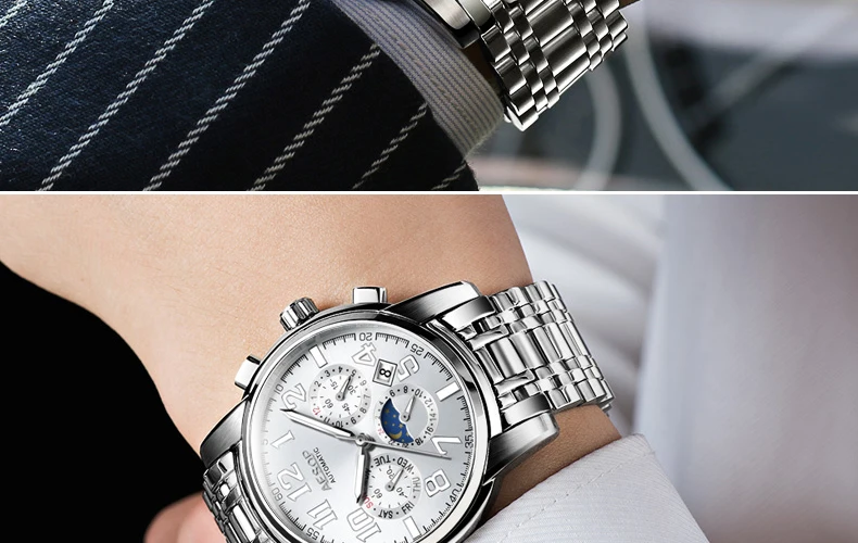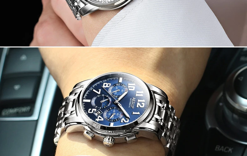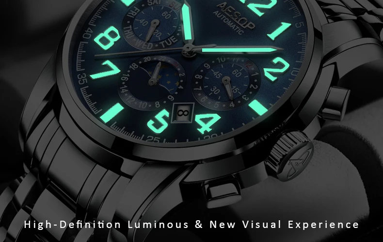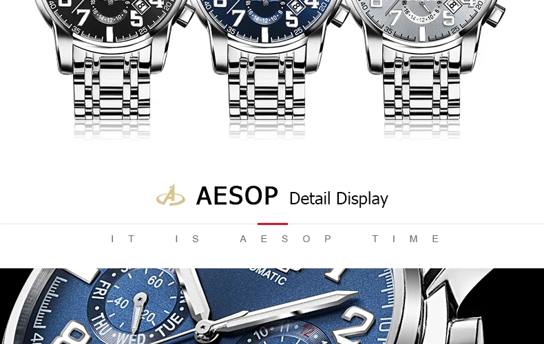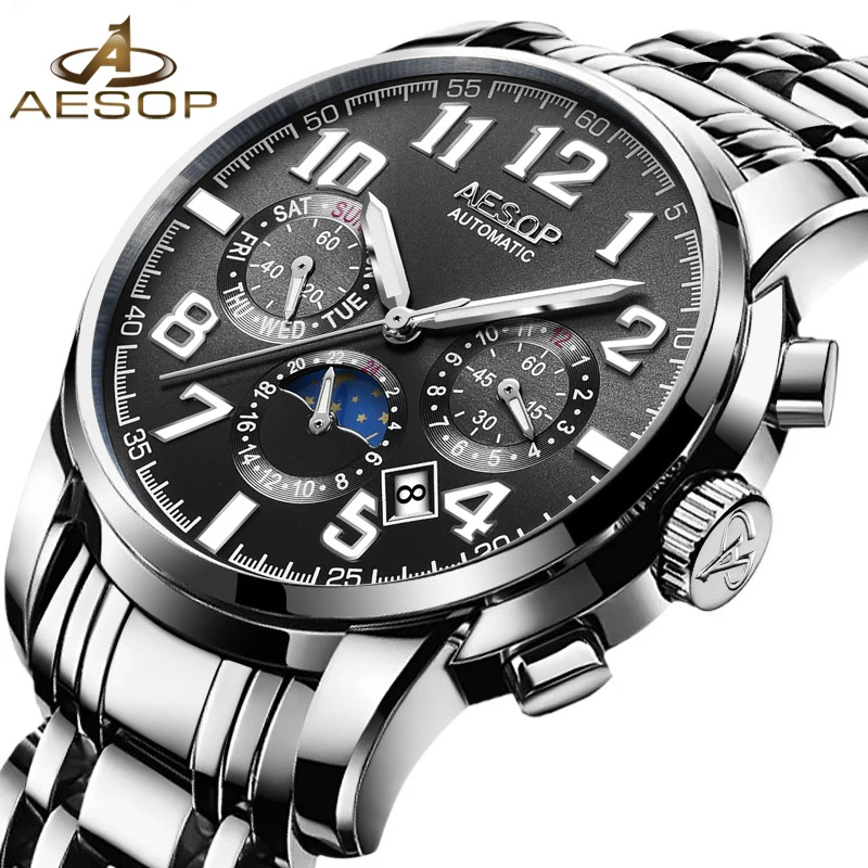 Автоматические механические часы AESOP для мужчин, отображение даты, месяца и недели, водонепроницаемые наручные часы, мужские часы