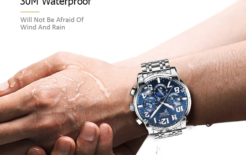 7. Эти часы водонепроницаемы до 30 метров (30 м, 3 АТМ, 3 бара): они используется для ежедневной стирки или использования под дождем.