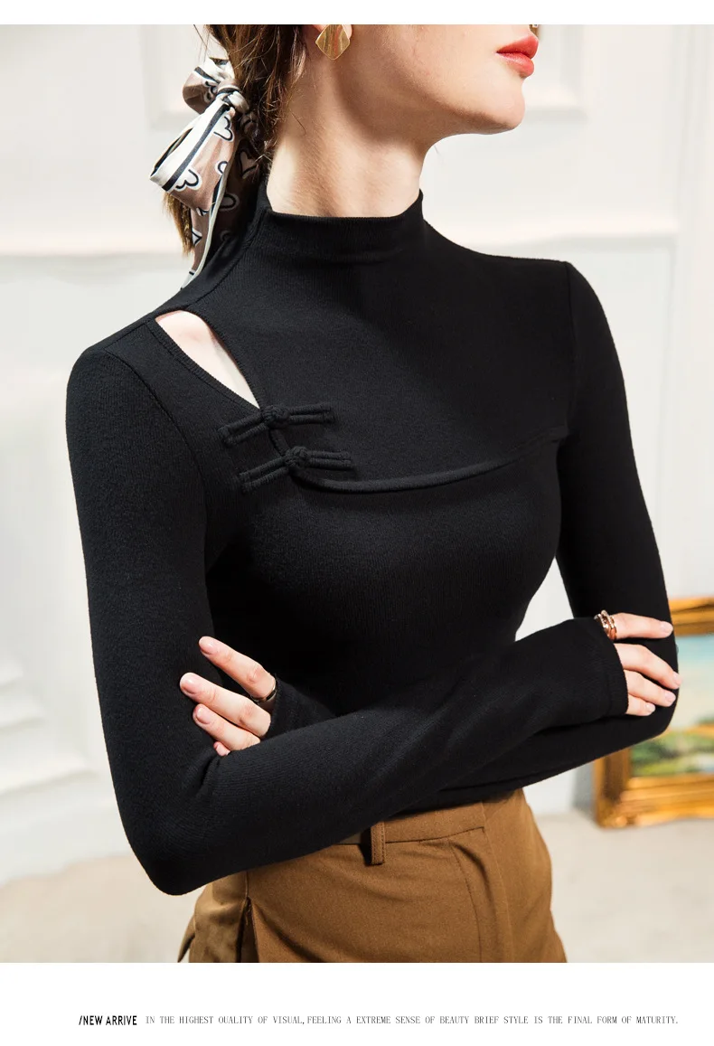 Осенне-зимняя новая небольшая рубашка с открытыми плечами и высоким воротником футболка с начесом в Западном европейском стиле маленькая рубашка с топом